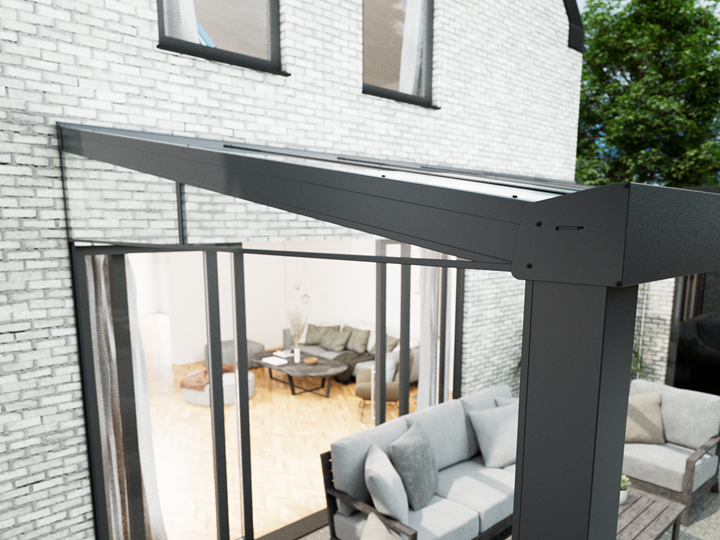Maak uw Veranda compleet met onze glazen spie. Deze spie vult de ruimte tussen uw schutting en overkapping, biedt extra privacy, houdt de wind tegen, en zorgt voor een strakke afwerking.
